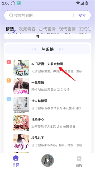 1、在首页或分类页面浏览并选择您想听的小说或书籍
