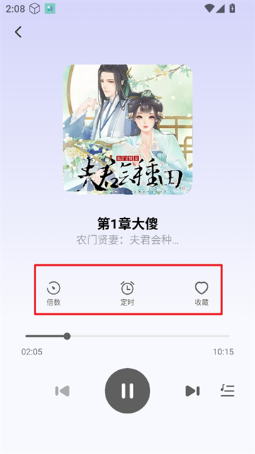 5、进入播放页面还能收藏书籍、调节播放倍速和定时播放。