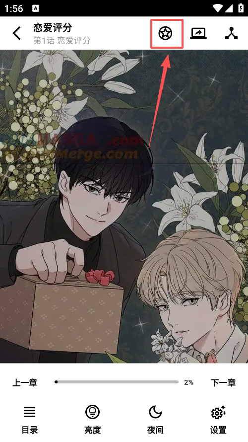 1、打开任意漫画后,点击屏幕中央唤起菜单栏,选择设置或阅读设置