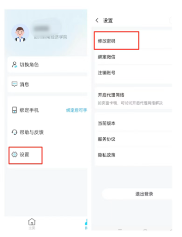 2.登录完成以后可自行在“我的”“设置”中更改密码,避免个人账户信息泄露