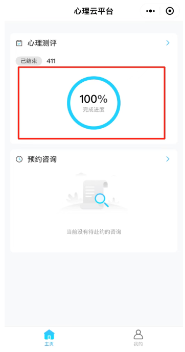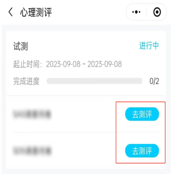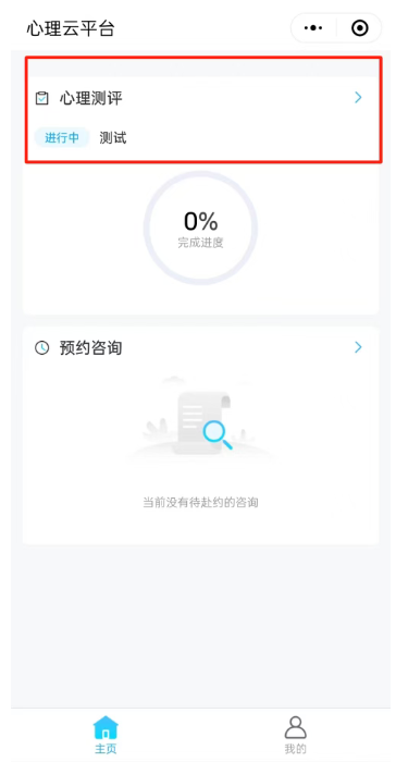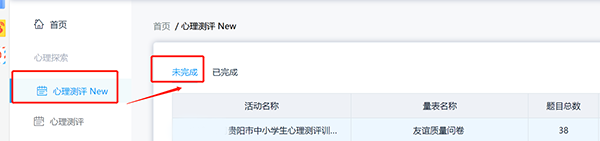 3. 登录成功后,返回主页,点击“心理测评”,可看到需要完成的测评活动。