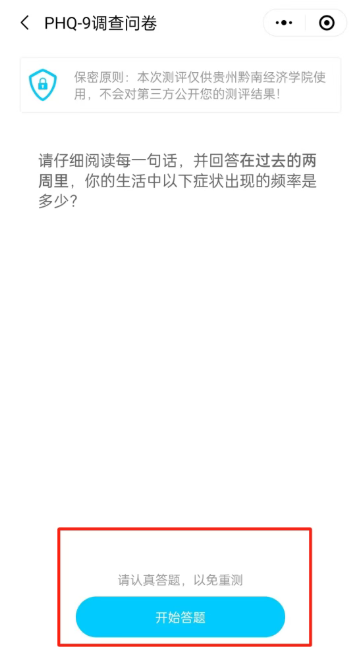 6. 认真阅读每题文字描述,选择最符合自己当前状态的选项(答案无对错之分),切勿胡乱作答,选中后系统会自动跳到下一题。