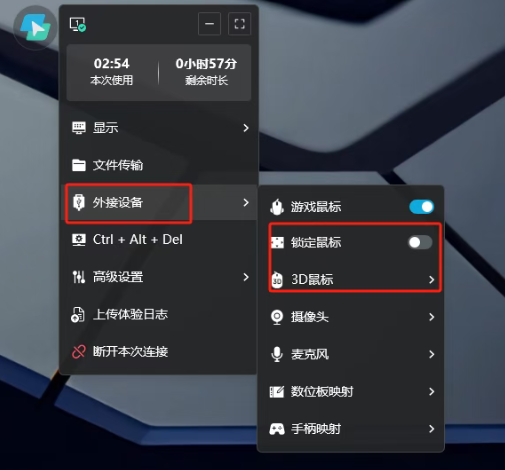 6、开启游戏时可按需设置3D鼠标和游戏鼠标状态,并提供数位板和游戏手柄映射功能