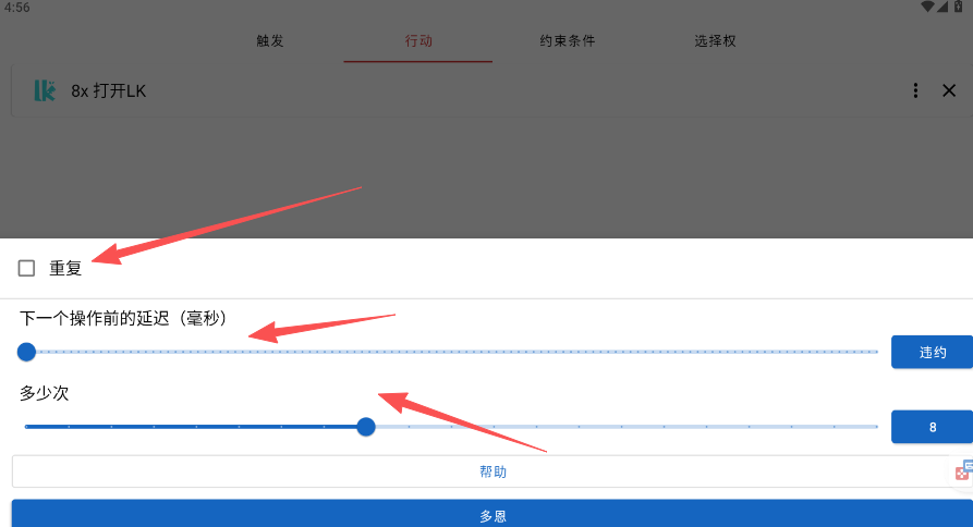 4、设置你所要设置添加的频率操作前的延迟以及次数。