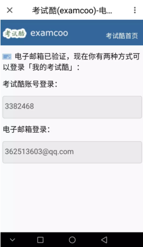 电子邮箱验证成功,现在你用就有两种方式登录考试酷