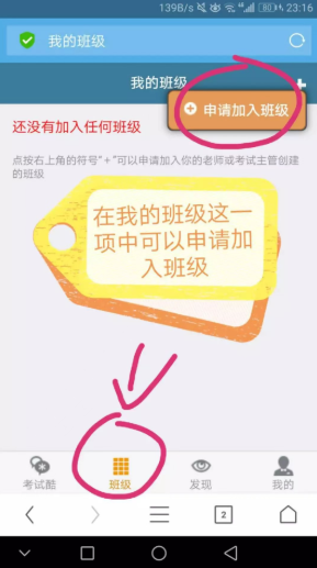 那我们现在来加入要学习的班级吧,点击右上角的加号,弹出申请加入班级