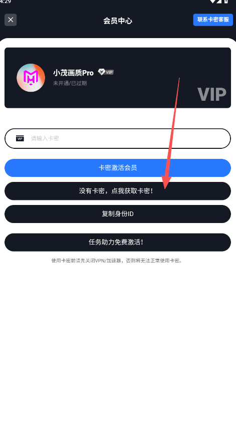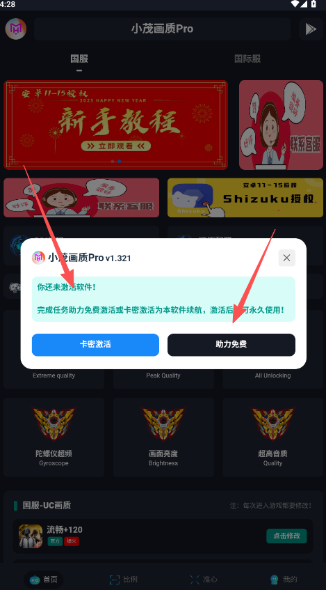 1、小茂画质Pro的答案主要获取途径还是常规的免费助力和购买卡密权限激活。