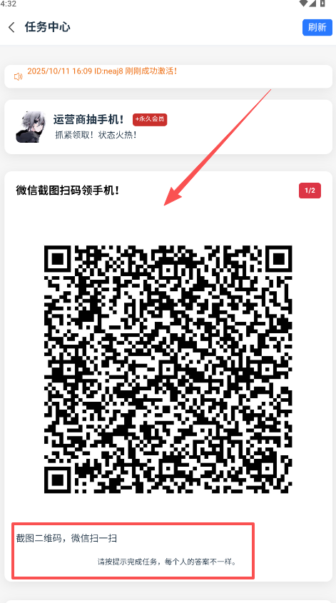4、免费助力部分,字面上免费,实际过程比较复杂,需要先扫描二维码,参与领取手机活动。