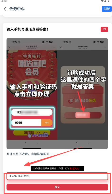 5、下方内容框内输入你正在使用的手机号码,激活获取答案,每个人的答案都是不同的,不要想着自己激活了,就可以共享。