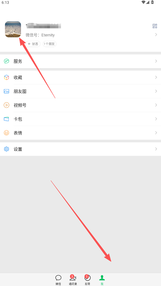 2、在模拟聊天界面,点击我的,找到上方头像点开。