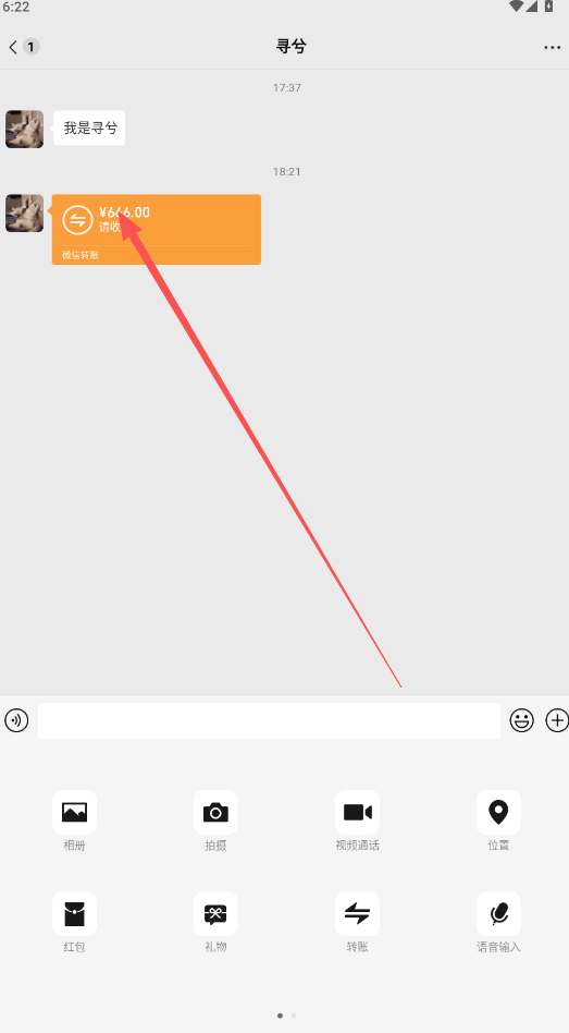 4、来到模拟聊天的场景内,就能够看到对方给你的转账了。