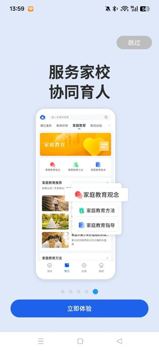 1、在本页面下载安装客户端打开,向右滑动页面跳过并立即体验。