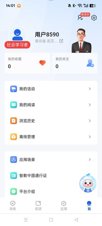 1、智慧中小学最新版本无需另外注册账号,可直接通过当前身份添加,在用户个人界面上方有一个小的人像图标,请点击。