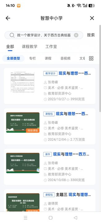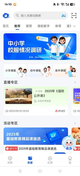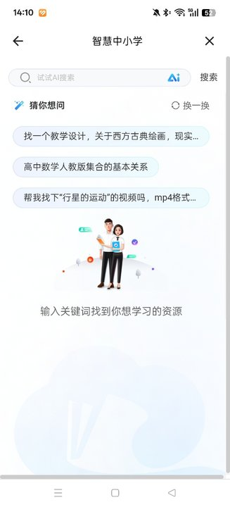 2、进入到AI的搜索频道,输入你要搜索查询的学习资源名称,或是点击下方推荐资源进行查找。