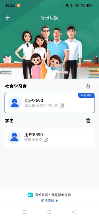 4、完成上述操作后,返回刚才的身份界面,可以看到多了一个学生身份。