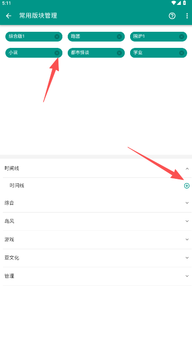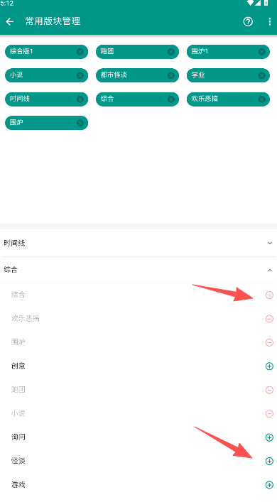 2、+号符号代表添加内容到常用版块,如果是删除直接点击x符号去除。