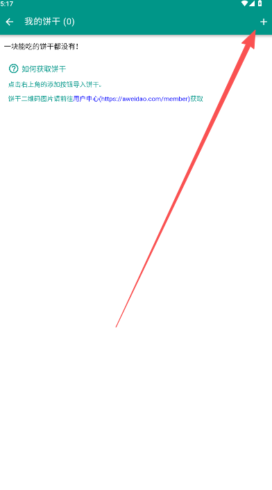 3、来到我的饼干页面,发现自己的饼干值为0,下方提示有说明,按照它给出的方法点击右上方的+号。