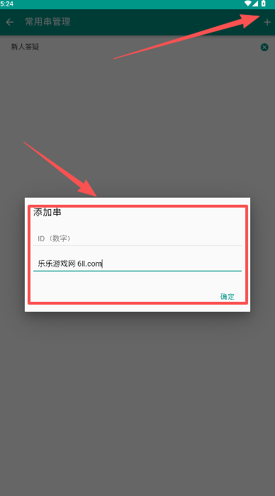 3、在常用串管理功能页面点击右上+号,完成串的添加,注意输入的数字ID和备注一定要写详细,点选确定提交完成此项操作。