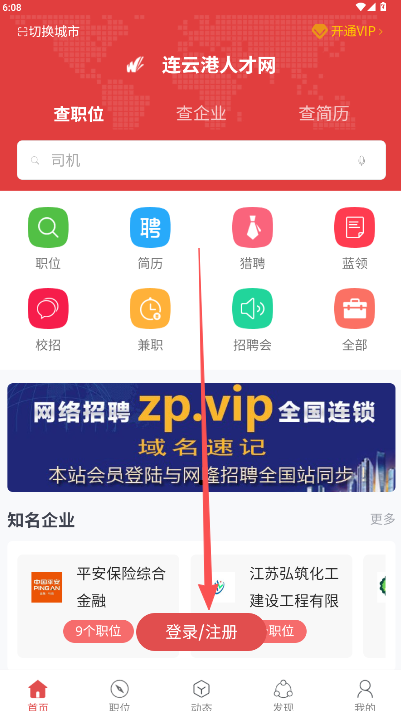 1、打开下载好的软件以后,在首页选择登录/注册。
