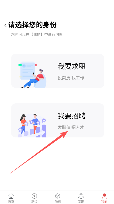 2、来到身份选择页面以后,点击选择我要招聘,也就是所谓的企业方。