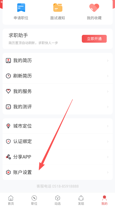 1、以求职者的身份登录,在个人我的页面点击账户设置。