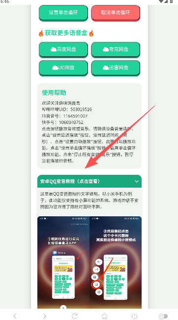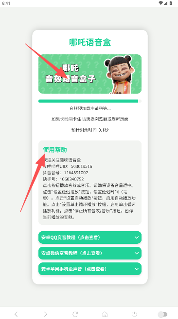 1、下滑音效区域界面到底部,首先看到的就是QQ平台的发布哪吒语音的使用帮助部分。