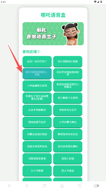 2、点击音效区域台词文字,播放哪吒系列电影中的语音播放效果。