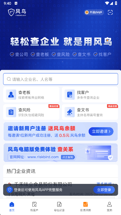 「风鸟-全国企业风险信息查询平台」是一款专业的企业查询监控平台,致力于为专业人士提供便捷的企业信息查询、风险预警监控、关联族谱查询等服务。