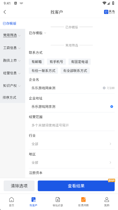 4、风鸟企业查询app同时也是为大家带来了找客户功能,根据需求来查找就可以了