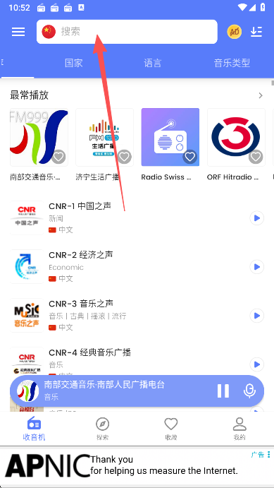 3、输入你想要搜索的电台,就可以等待搜索结果了