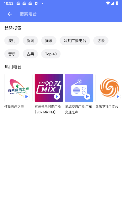 一款好玩的专门用于电台广播APP,它可以收听来自世界各地的50000多个网络广播和FM Radio,也可以免费收听所有免费的FM广播电台和网络电台!MyRadio汇聚了丰富的中文电台资源,为您量身打造个性化广播体验:CN广播电台、怀集音乐之声、轻松调频EZFM、CRIhitFM、80后音悦台、AsiaFM……