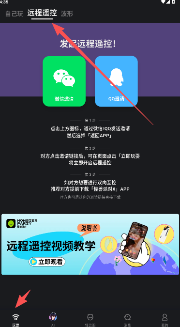 1、注册登录软件后,点击打开远程遥控界面,使用微信/QQ的方式分享邀请。