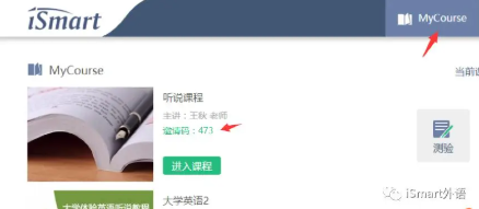 8. 点击“MyCourse”,查看邀请码,将邀请码告知学习本课程的学生,学生使用邀请码即可选课学习