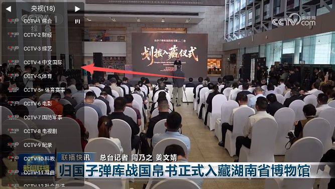 2、点击左侧列表查看节目单,选择频道可切换至指定播放观看界面。