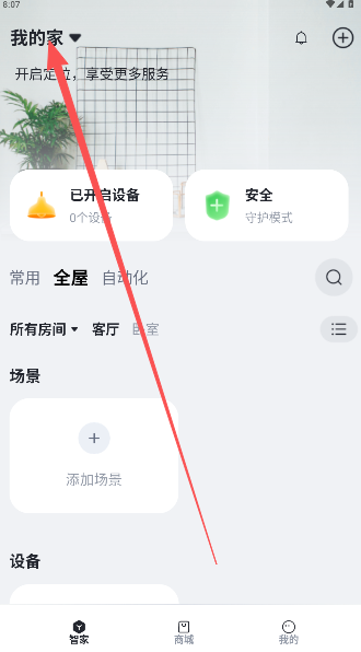 1、小立管家软件使用需要配合旗下智能设备,点击右上方+选择添加设备。