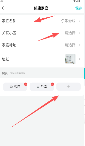 4、填写你要添加的家庭名称、关联小区以及家庭地址等信息,同时在下方创建要进行管理的场景保存,即添加成功。