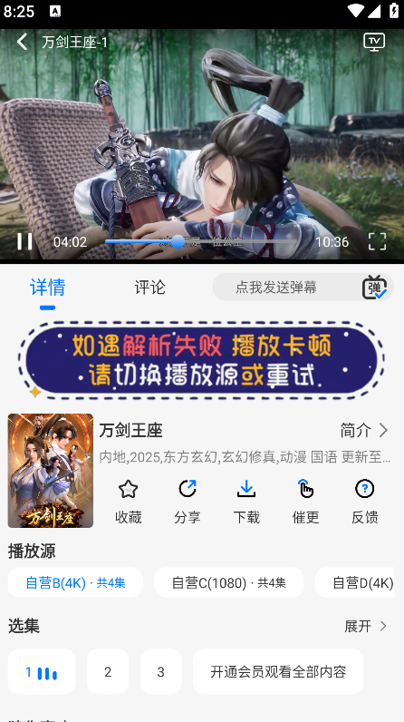 然后选择要看的动漫,点击播放按钮就可以了,比如小编追的刀剑王座;