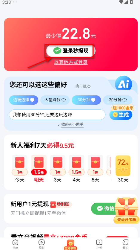 典型场景:快速搜索信息、浏览热点资讯、完成赚钱任务。