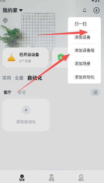 1、立林智慧生活设备添加可在智家页选择:添加设备、添加设备组。