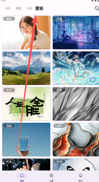 1、首页壁纸栏目为用户们精选多个不同风格类型的壁纸。