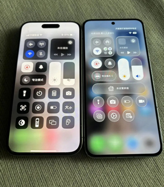 下面是一组效果图对比,左边的是小米13,右边的是苹果15安卓仿苹果的效果对比: