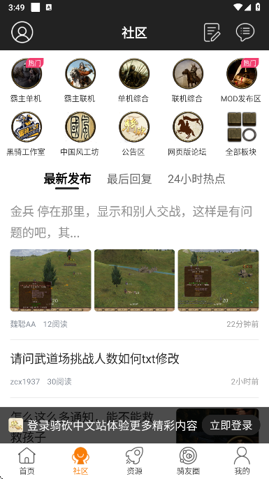 骑砍中文站这是一款专门为喜欢玩骑马与砍杀的游戏玩家朋友打造的游戏社区,在这个社区中玩家朋友是能够获取到全面的游戏攻略内容的,随时都是能够了解各类动态资讯等等,能够为大家提供到不错的游戏社区体验,有想要了解更多的朋友现在就来下载使用吧!