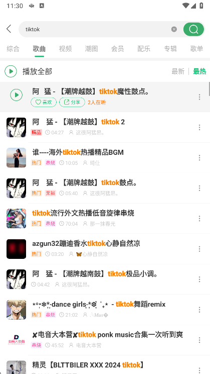 3、搜索出来的歌曲都是非常全面的,您可以任意收听