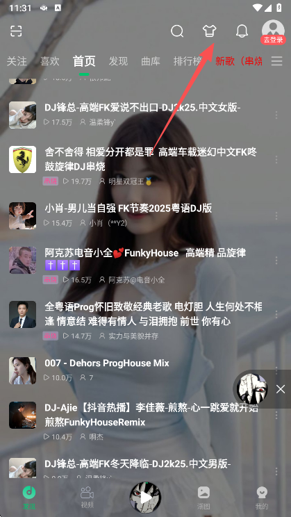 1、在本站下载安装Y2002电音app打开,来到首页查看推荐曲目