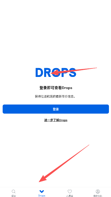 1、登录天巡Drops,进一步了解往返航班的最新降价信息。