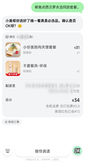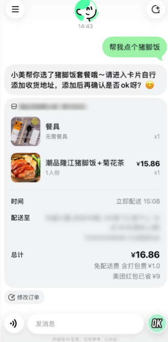 一句话帮你点外卖,一杯奶茶、一份工作餐,只需要一句话就够了;