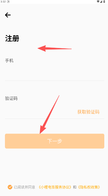 3、输入正在使用的手机号码,填写手机所接收的验证码完成注册操作。