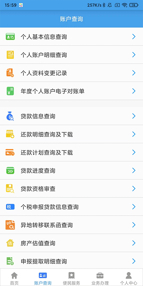 公积金,贷款账户多种信息查询;