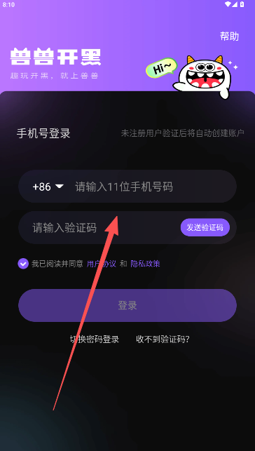 1、输入用户正常使用的手机号码和短信验证,一键注册登录进入。