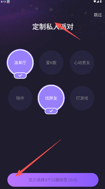 3、选择3个你感兴趣的兴趣标签话题,系统会根据你的所选推送与你相同喜好的喜好和内容。